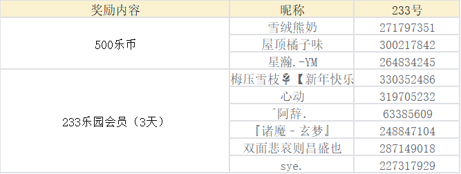 随机抽取15名船员,送出233乐园会员(3天)