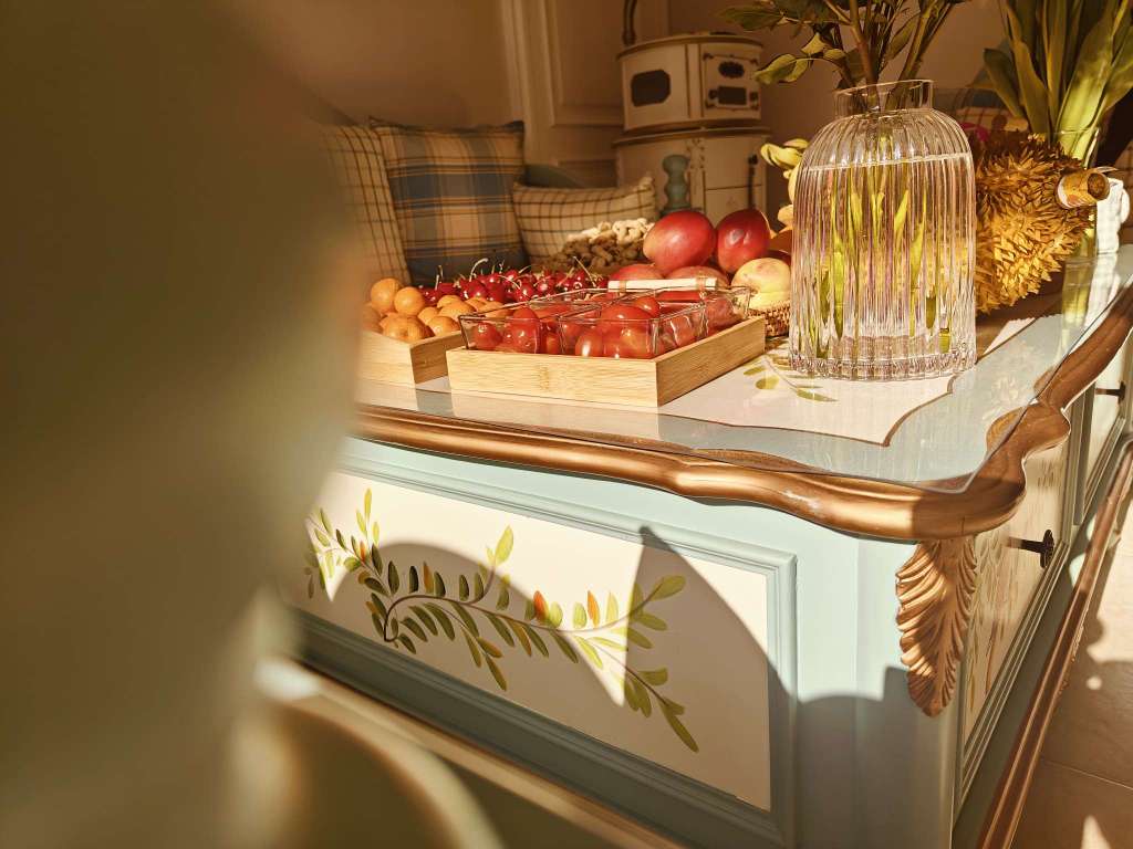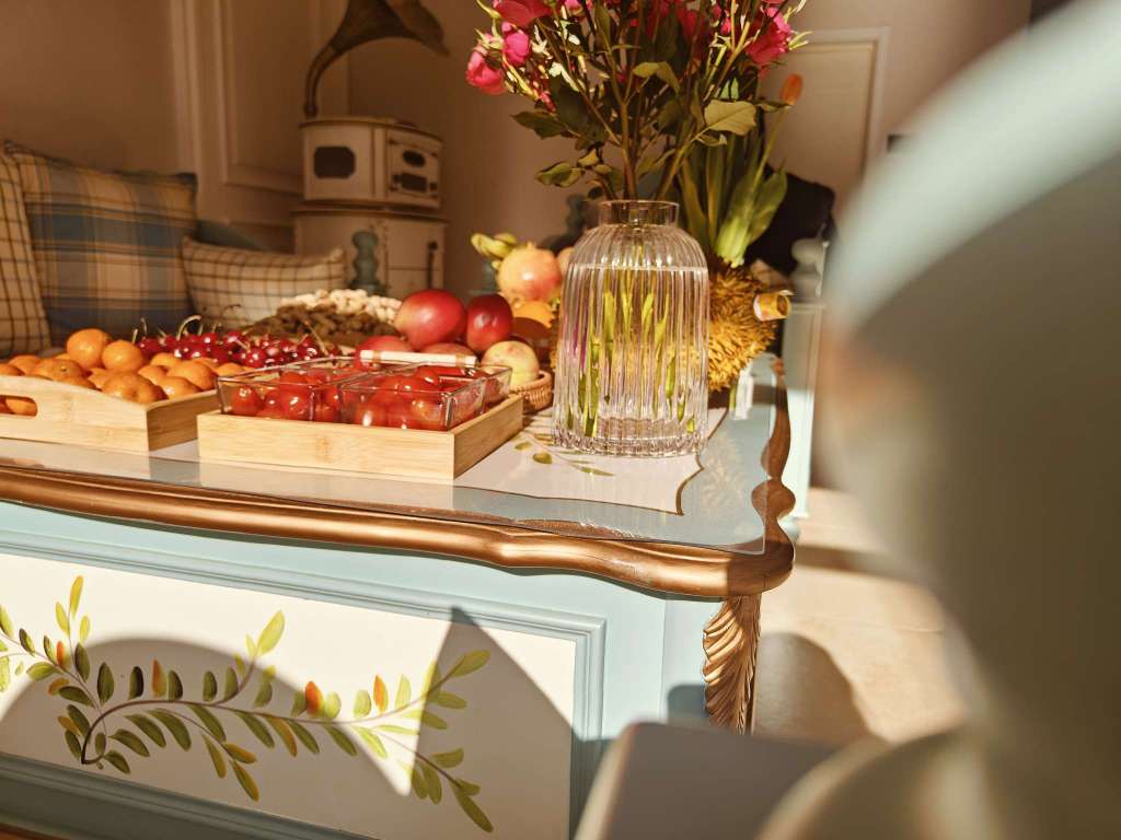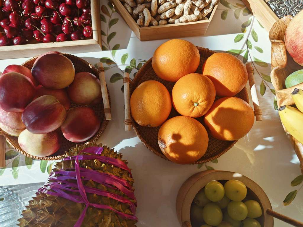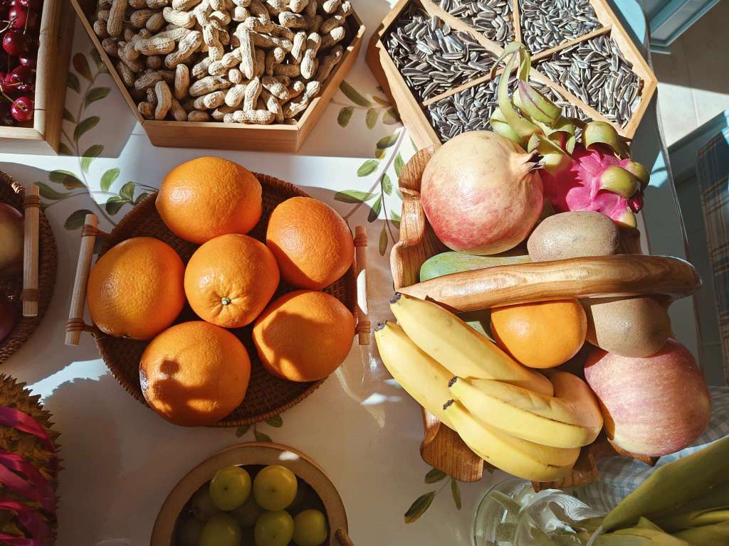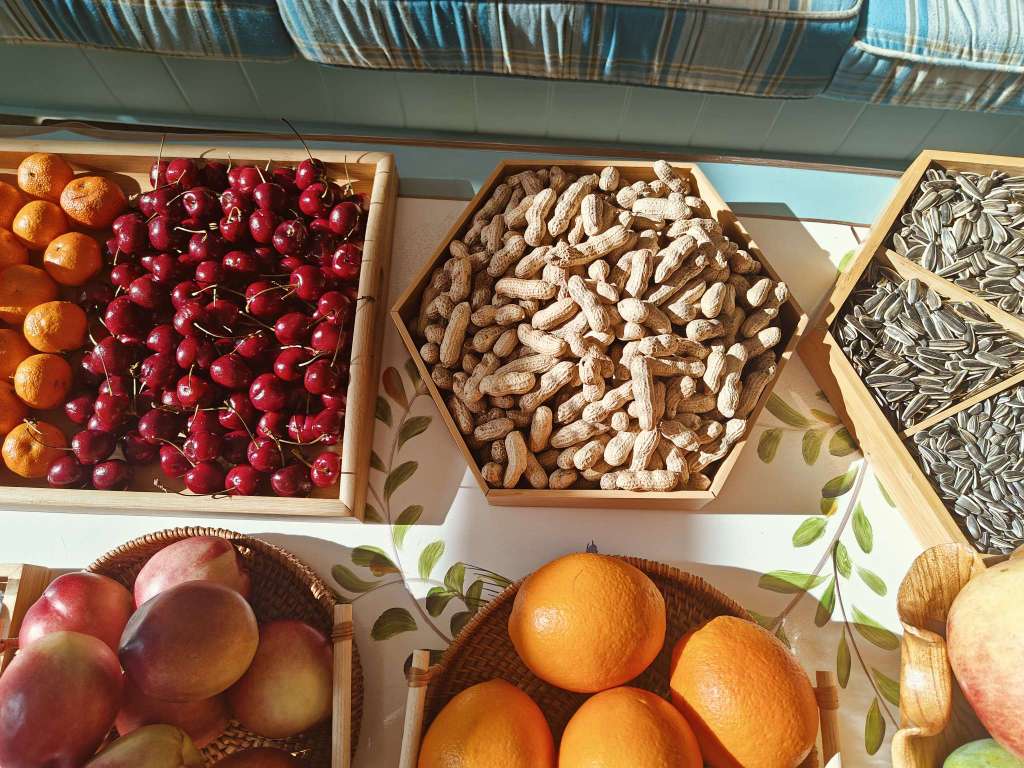 来大姑家了,大姑摆的水果和小花