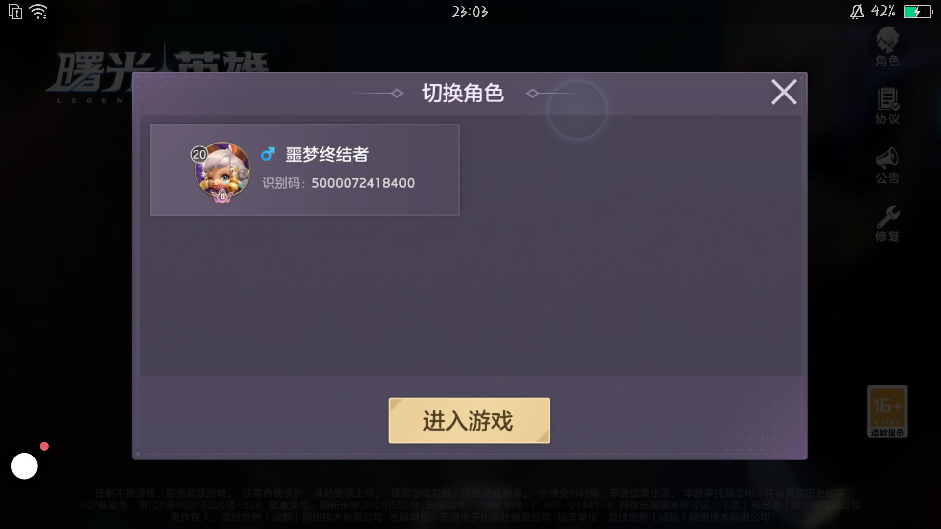 这不是我的号,但是点了进去了是我的大号暴躁小女孩这个号,我好久就建了一个小号,但是小号登不上去,我大号头像是一个艾露妮的头像,小号好像是望舒或梅朵的头像谁知道怎么回事😪
