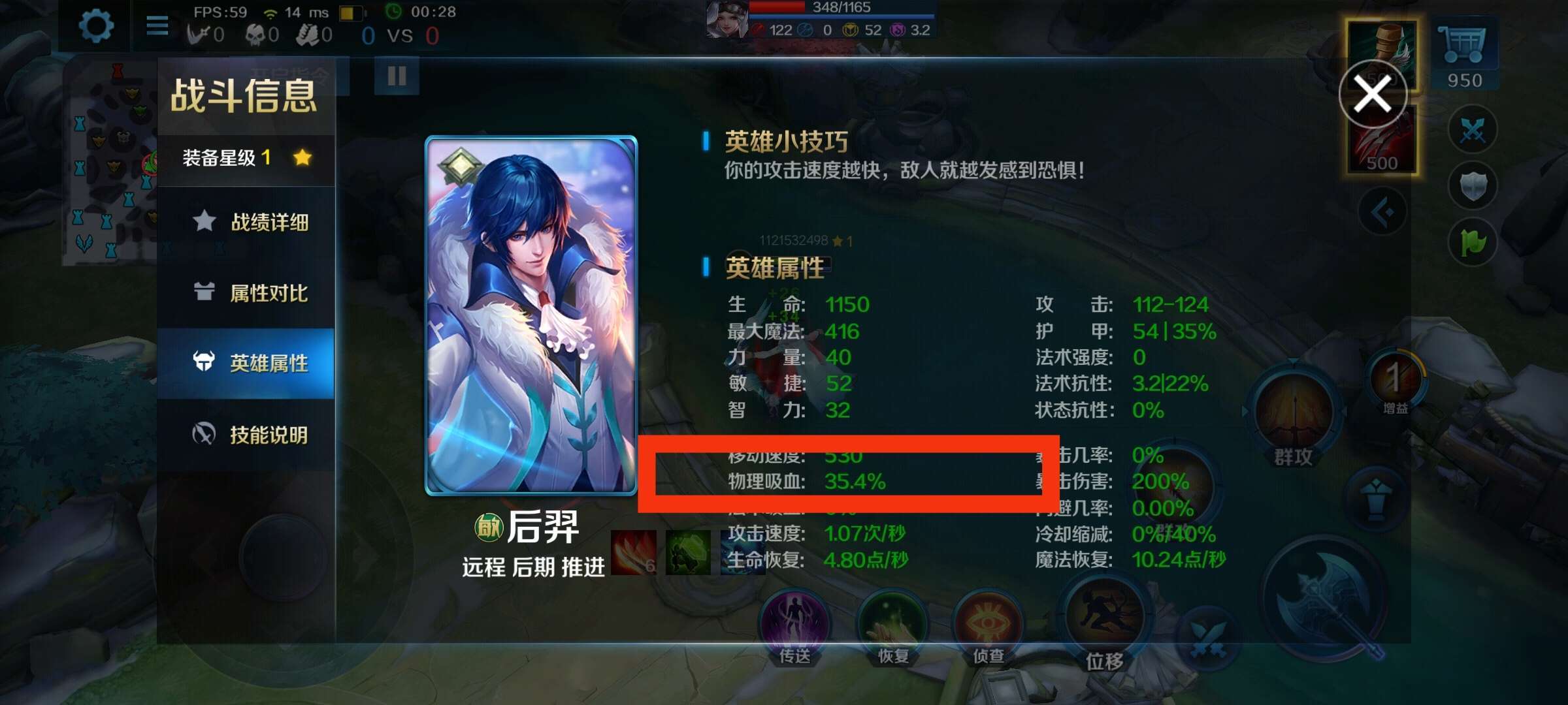 最后说一下由此衍生的,射手1级,对线细节——开局35.4%吸血: