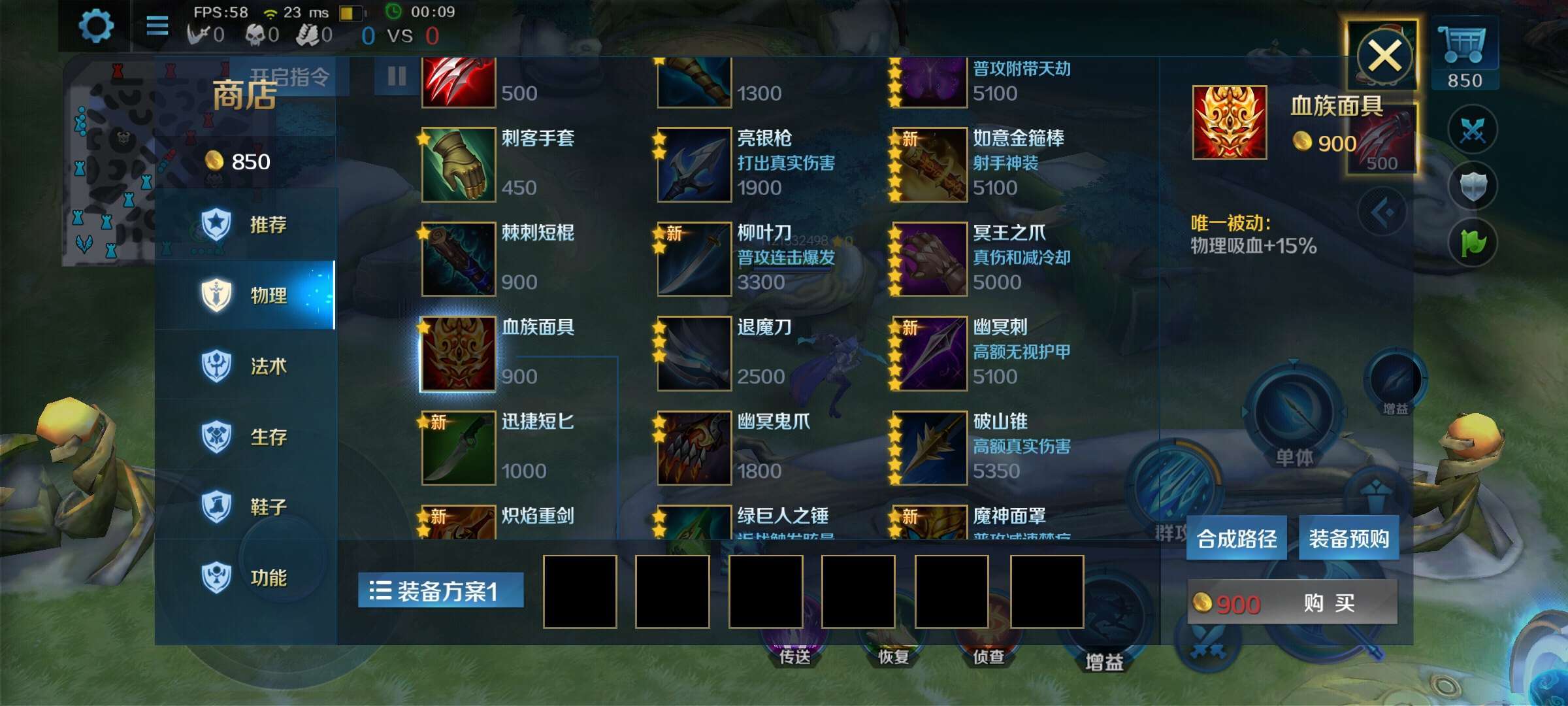 开局初始金币为850,而吸血面具需要900,也就是说还差50,如下图: