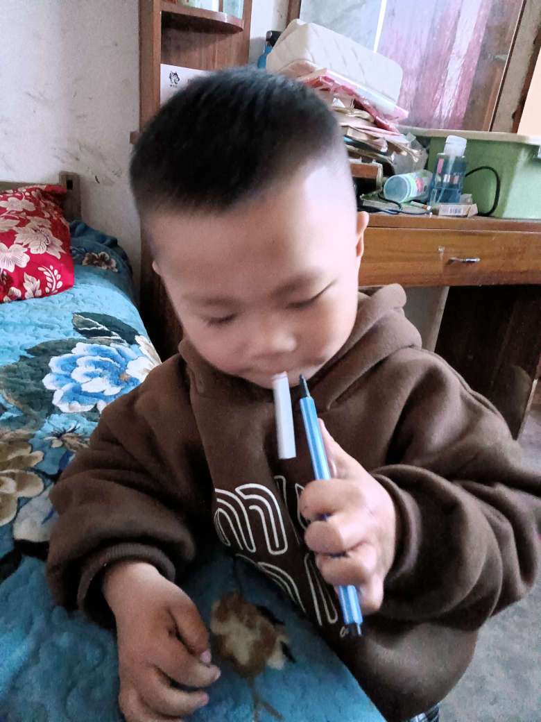 过来看我家弟!都学会抽烟了