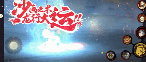 学员们对沙画感兴趣吗?来看看我爱罗准备的沙画表演吧!只见我爱罗大手一挥,一双沙掌托举着一颗沙球升向高空,随后双掌合十将沙球挤爆,一幅双龙戏珠的沙画便在高空铺开!中间发生了什么?风沙太大豚豚完全没看清啊!