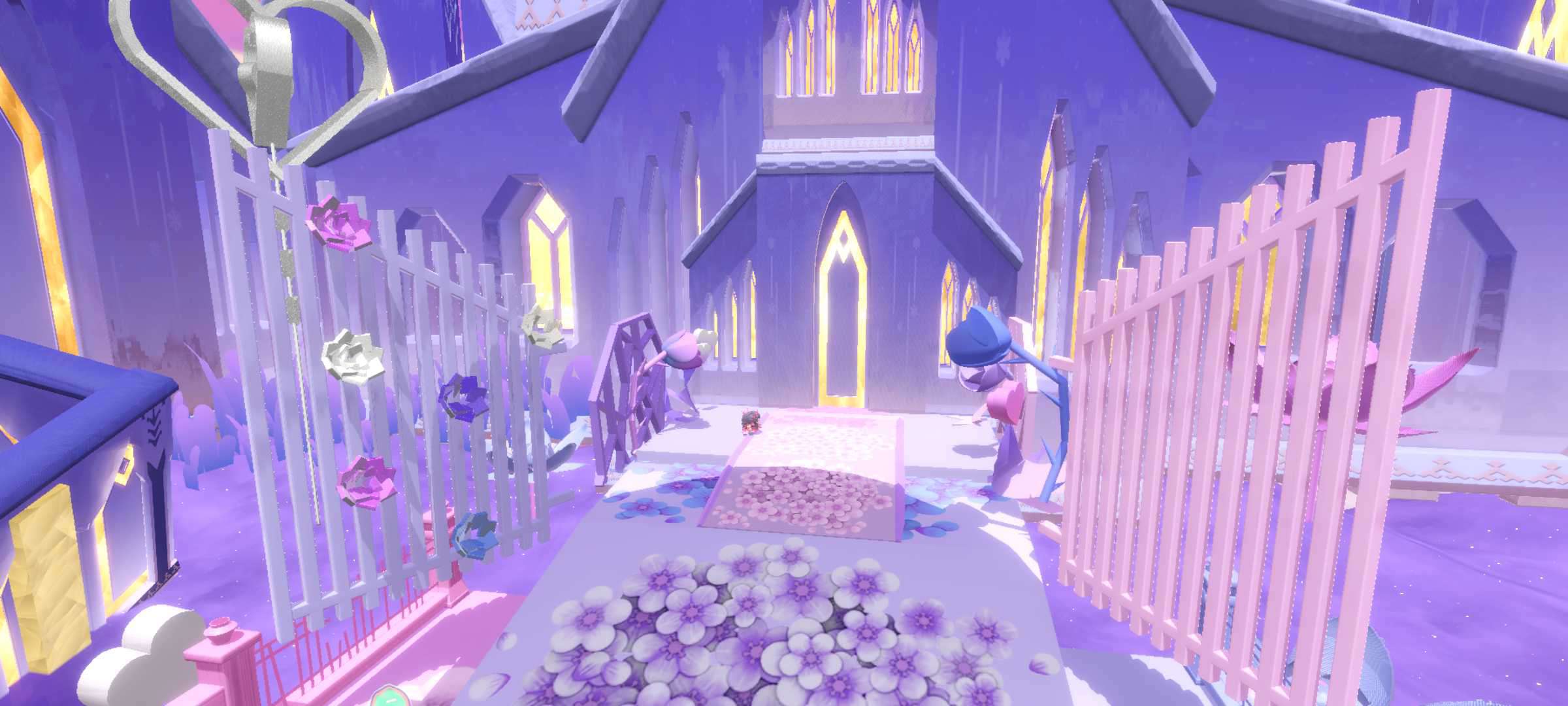 这个照片也很好看哒,可以跳上地下的那个紫花朵(是一个弹跳板),然后穿过爱心风圈哦❤️