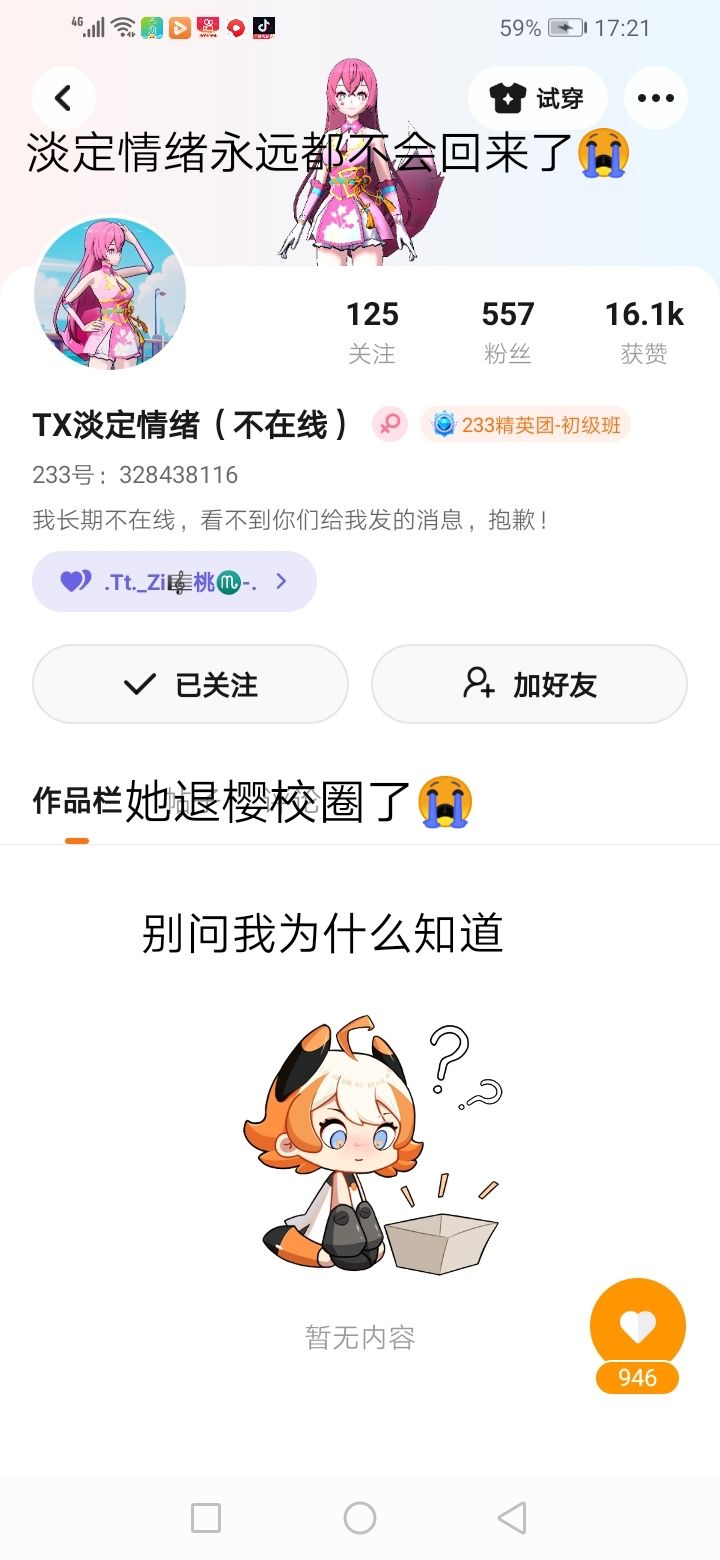 唉,她退樱校圈了,真是可惜!你问我为什么知道?