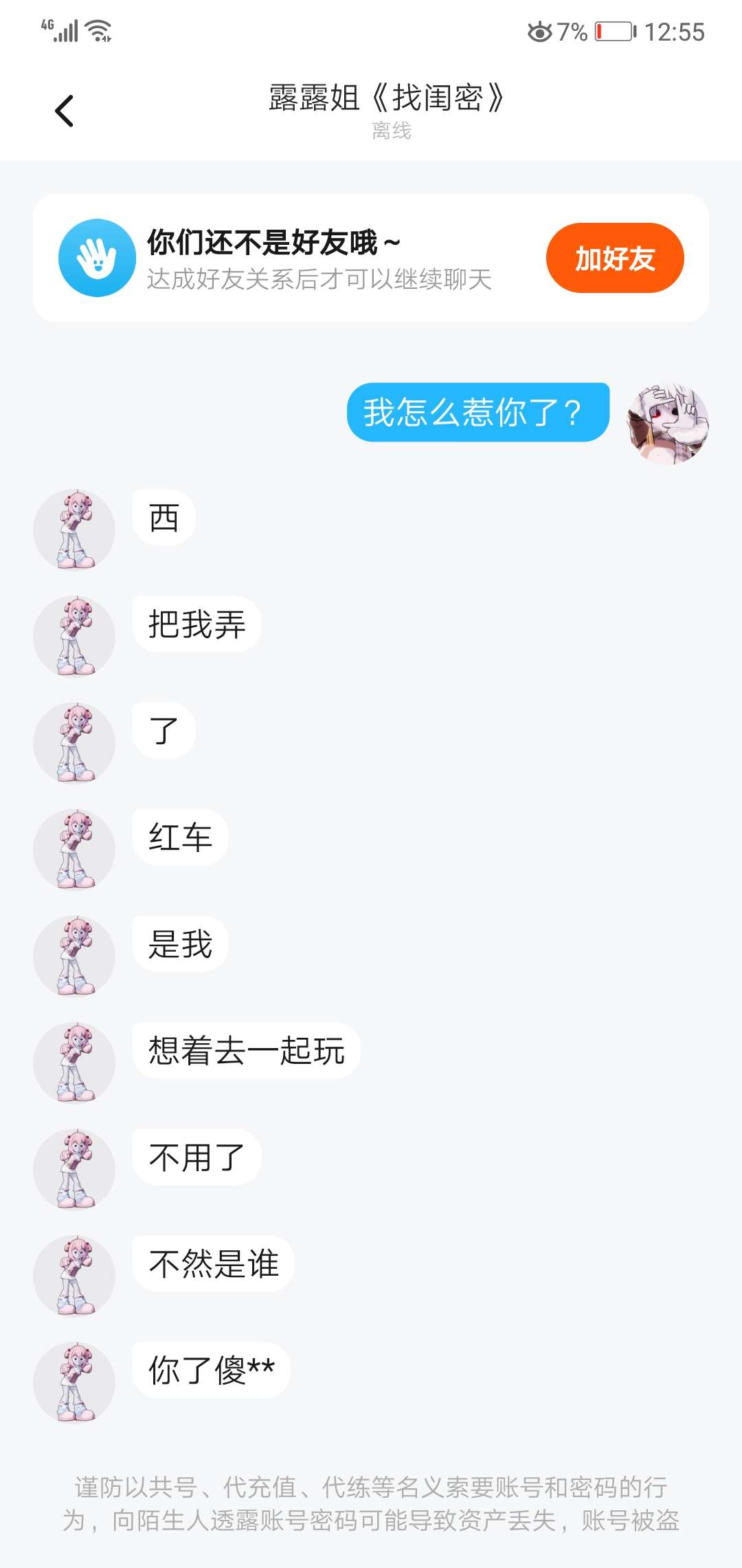 事情是这样的我不小心用鞭炮砸到好友坐的红色的车我还没道歉,他就把我这个好友给删了,他是我最好的好友😭😭😭他衣服多换了,连名字都改了😭😭😭
