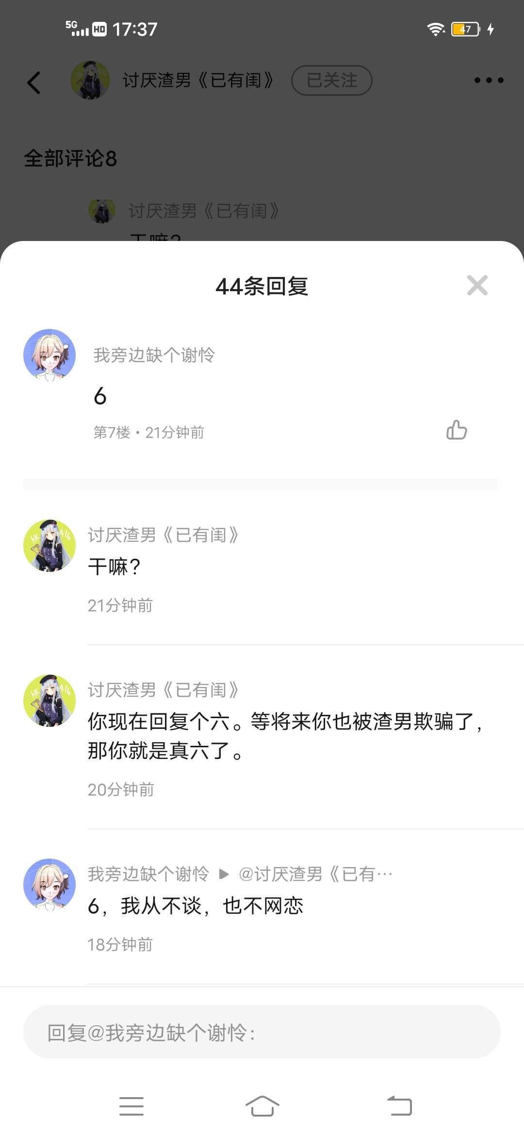 兄弟们,谁懂我?徒弟被渣男欺骗了。他上来就是一个六。后面各种骂人。看到的举报点一波。