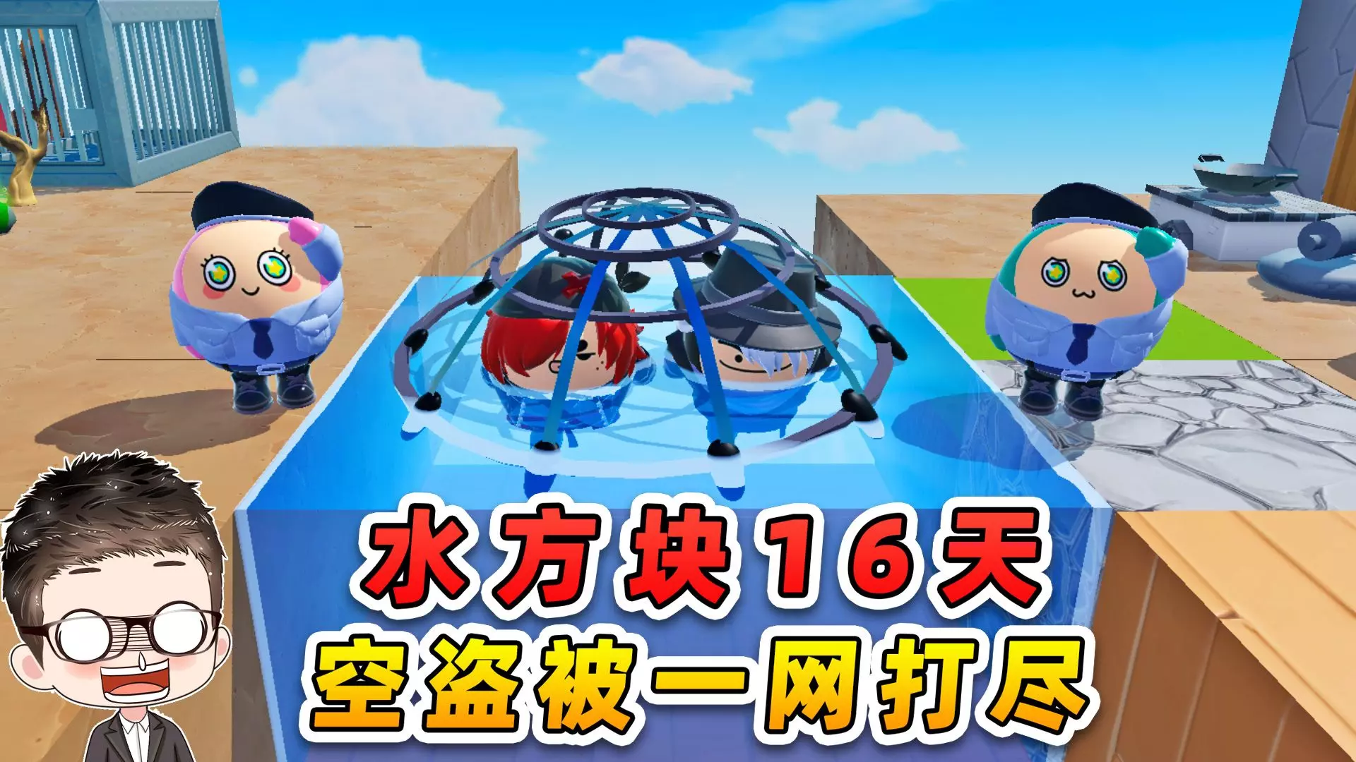 蛋仔派对:水方块生存第16天!剧情大反转,空盗被一网打尽!