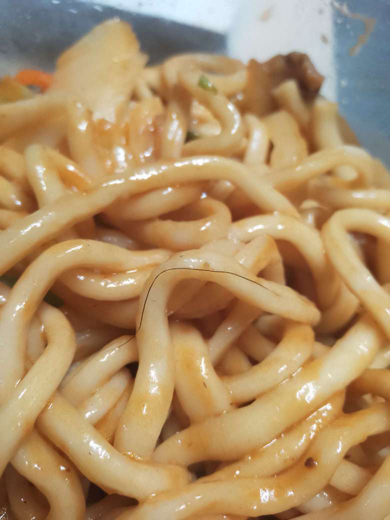 吃外卖吃到了头发😅关键大碗,只有一点面是生怕我撑到了吗😤