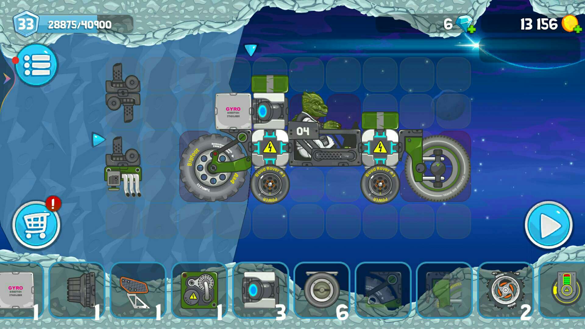 全能车!慧星过不去,大神可以试一下。(过北极星要一定技术)注意:这辆车所用的零件我都满级了。