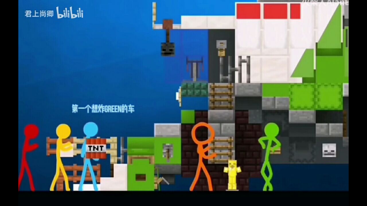 火柴人五兄弟 小绿拿到了第一,而三个火柴人使用炸弹TNT方块炸小绿的车