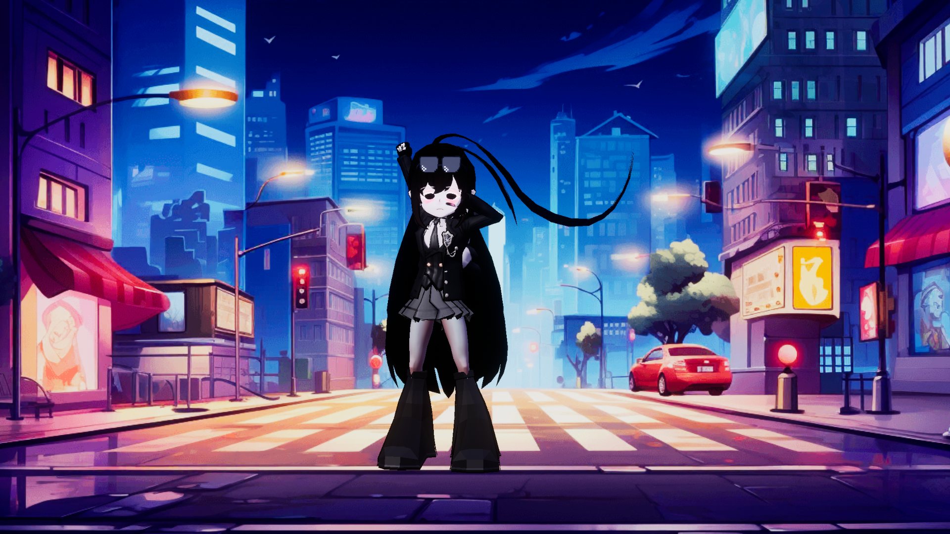 今天是黑色系的。很拽