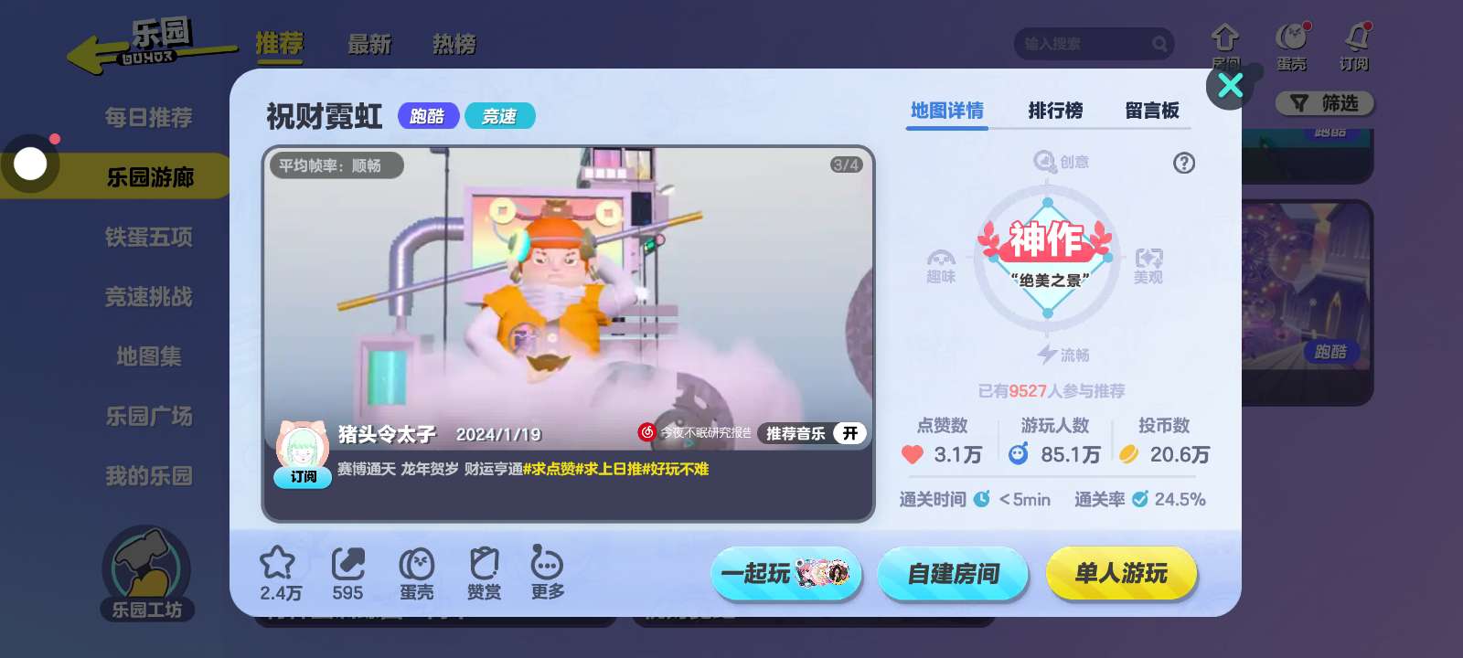 作者一个人做的地图十分好玩!有一种感觉自己在生存跑酷,音乐也跳得非常好,非常推荐‧˚₊*̥(∗︎*⁰͈꒨⁰͈)‧˚₊*̥