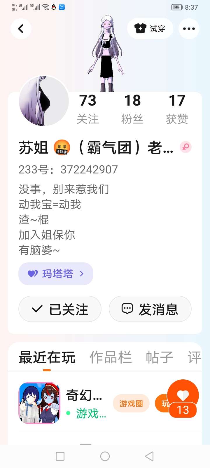 霸气团招人了,想加入的去加他哟,你可能会变成霸气团的团宠哦