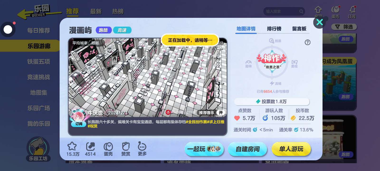 ୧⩾Ꙫ⩽୨整体做得非常大,共有两层,共有64关(没有耐心的小伙伴千万不要玩哈)一眼望去,简直就是小蛋仔活在了漫画世界!( ᵒ̴̶̷̤໐ᵒ̴̶̷̤ )还会出现小爱心~直戳宅男宅女小心脏