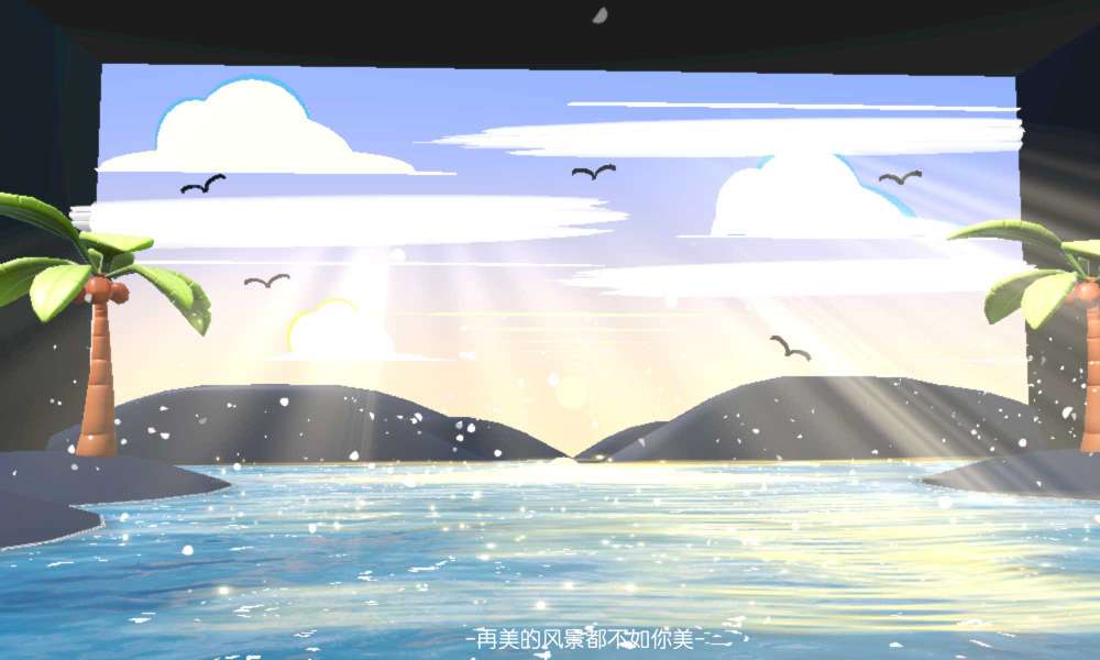 最后一个场景主题是海上的太阳,景观有椰子树、礁石、海鸥、云、海、太阳等…