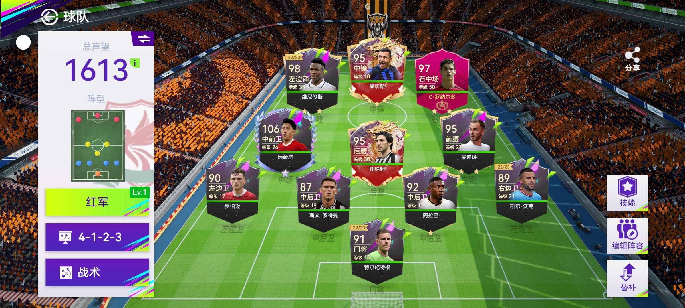刚改完阵容用一张88,一张90一张91。换了多纳鲁马