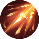 布伦希尔德向前连续的刺击6次,每次刺击造成物理伤害,每次刺击命中会获得一层光辉印痕。每次刺击都会指引一颗晨星继续向前飞行,对命中的目标造成法术伤害