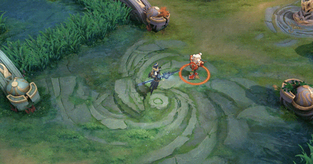 布伦希尔德向一个范围投掷永恒神枪,对范围内的目标造成法术伤害,同时生成一处既定命运之域,为身处其中的敌人附加永恒刻印,持续4秒。既定命运之域会在1.5秒后收束,将所有命运之域中的敌人向中心拖拽一段距离并附加受到法术伤害