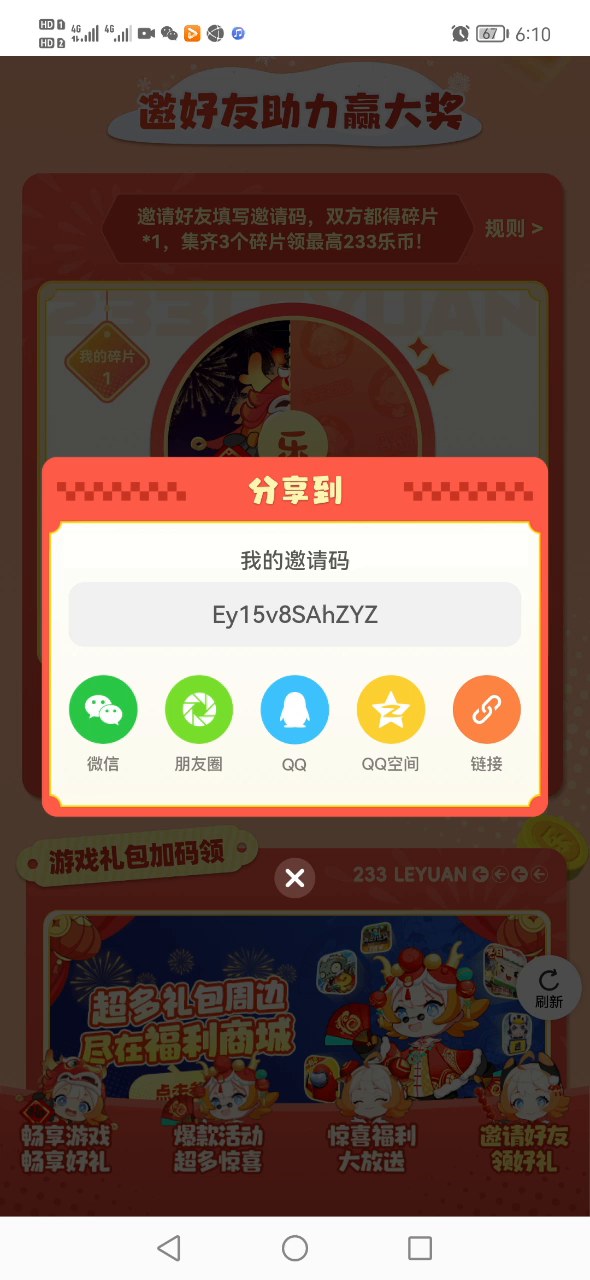 我的邀请码Ey15v8SAhZYZ有没有人帮我助力一下我们互相助力,还可以带你上恐龙和凤凰,求求大家了我真的想要乐币怕