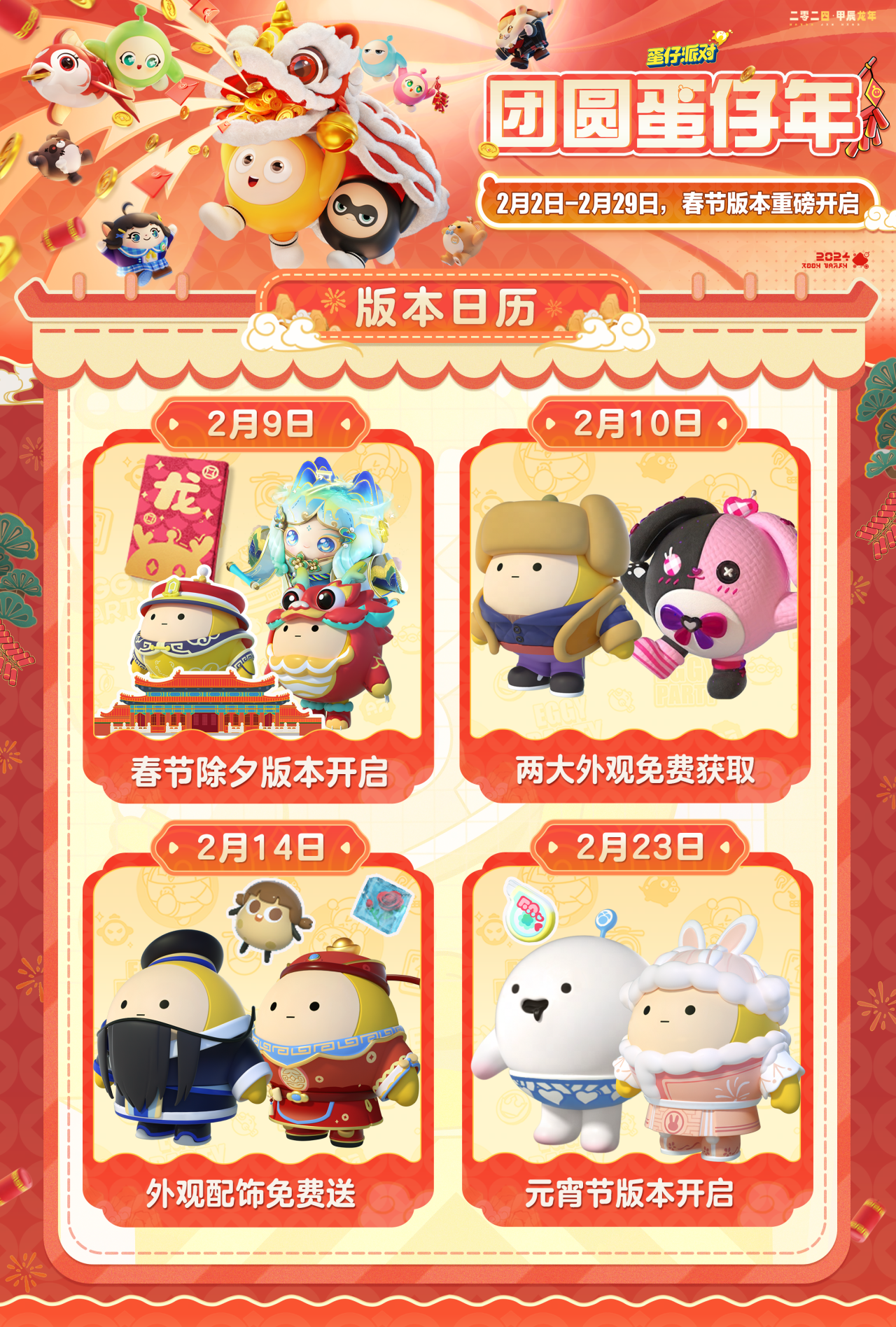 《蛋仔派对》2月22日完成不停服维护,开启元宵相关活动,包括妙妙新店筹备、团圆福利节等,可免费获取外观、配饰等;还上线新玩法<美食加工厂:蛋宅大院>,对蛋仔岛、乐园工坊等进行更新优化,圆圆子也重返蛋仔岛。