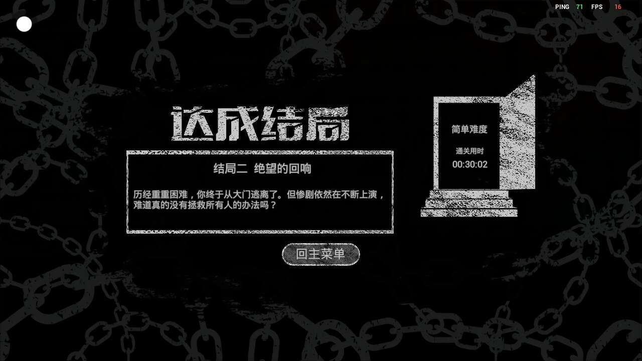 成功通关,从大门逃出来的。