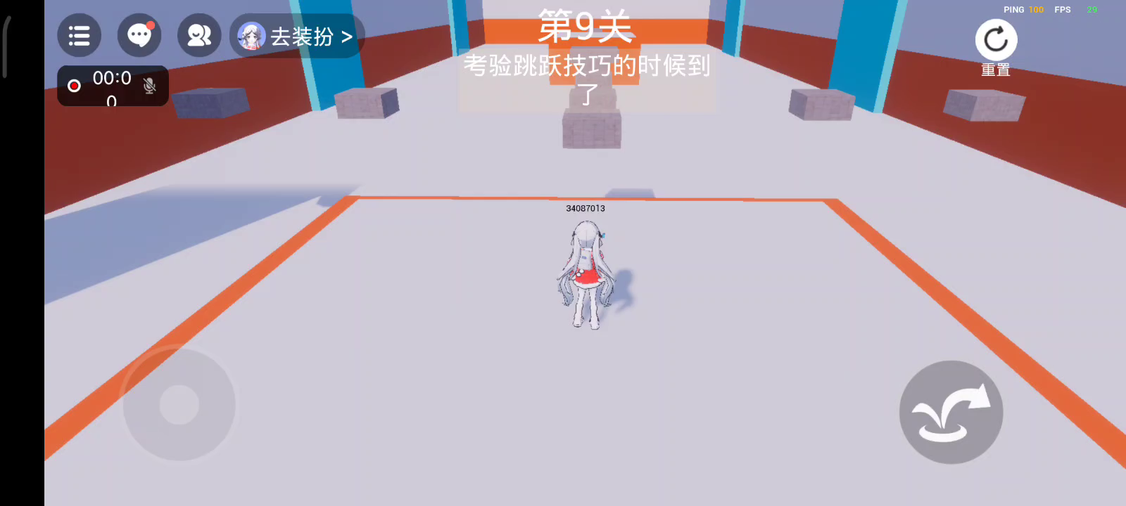 第九关很简单,倒数第二个小方块,只需要走到边边,然后二段跳就可以了