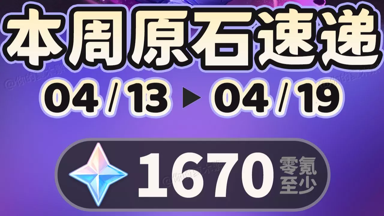 2026/04/13 ~2026/04/19 本周原石:1670💎 【砺行修远】第三期第八周(可以领命座啦~) 【本周活动】幽境危战(450💎)、深境螺旋(…