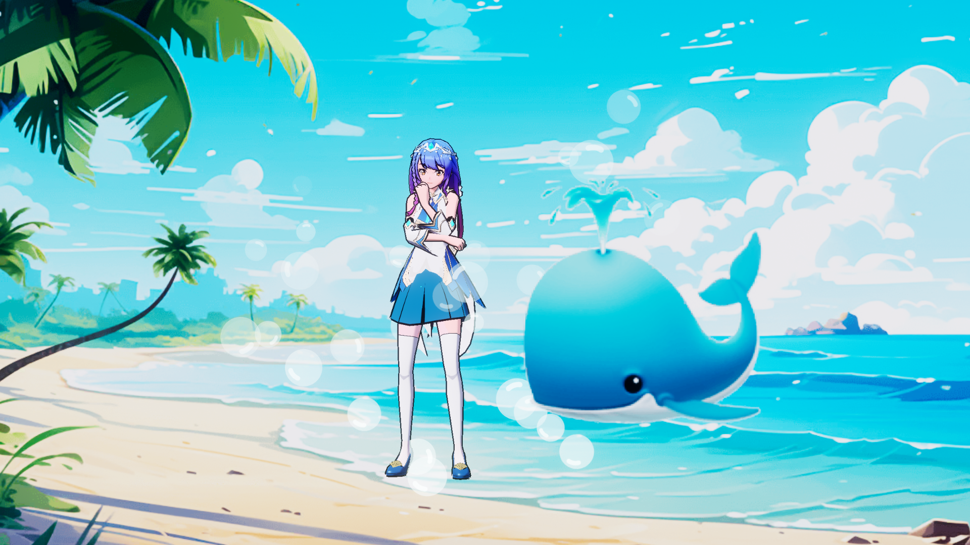 这次又换成蓝色短裙!好看吗?