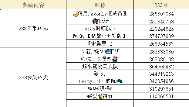 抽取10名小伙伴送出233会员7天