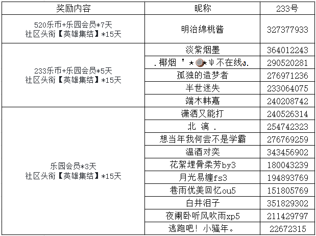 随机抽取5名召唤师送出233乐币+乐园会员*5天+社区头衔【英雄集结】*15天