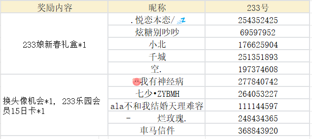 开学小幸运(5名):233娘新春礼盒*1