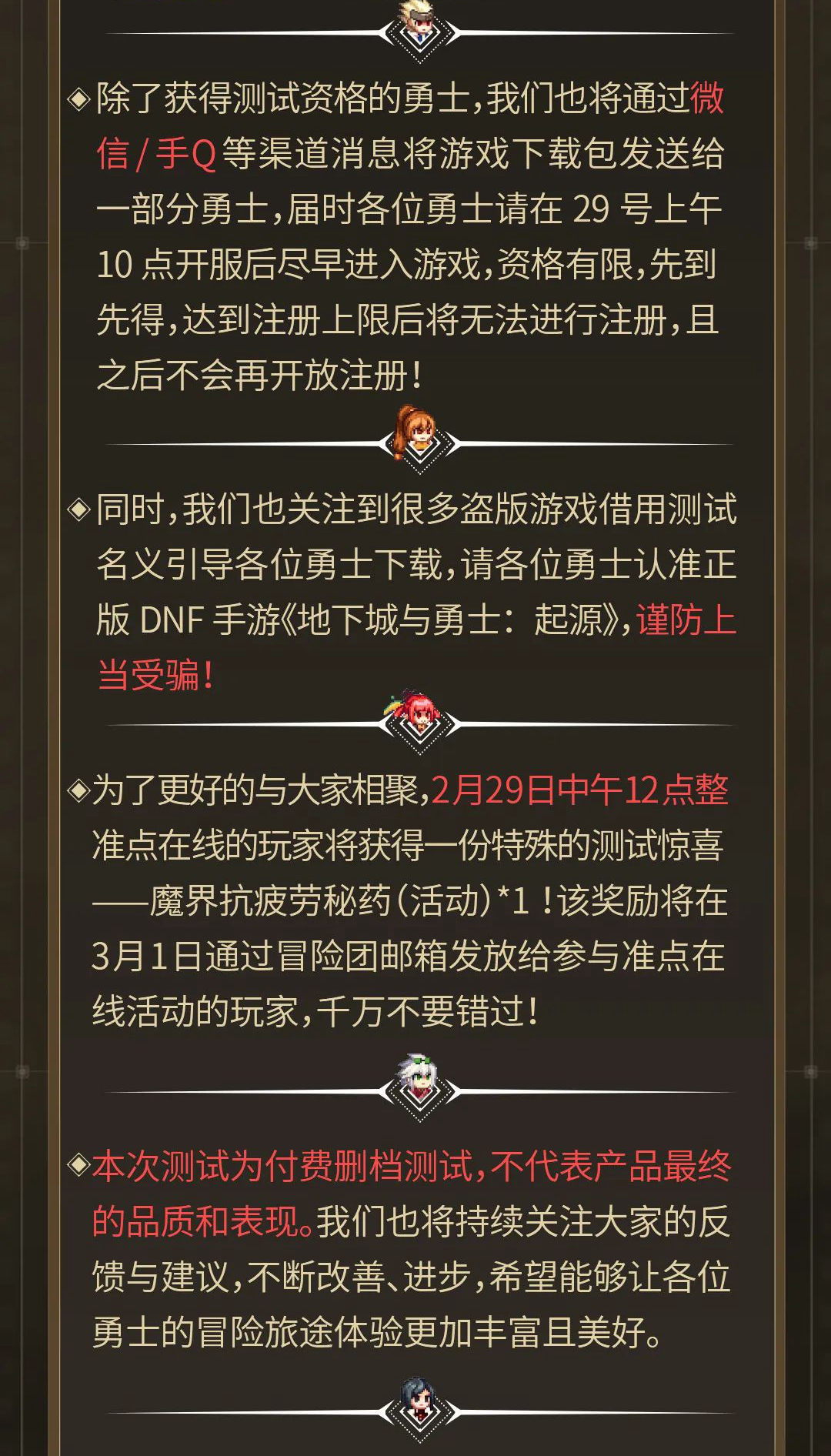 《地下城与勇士:起源》先遣测试相关内容说明