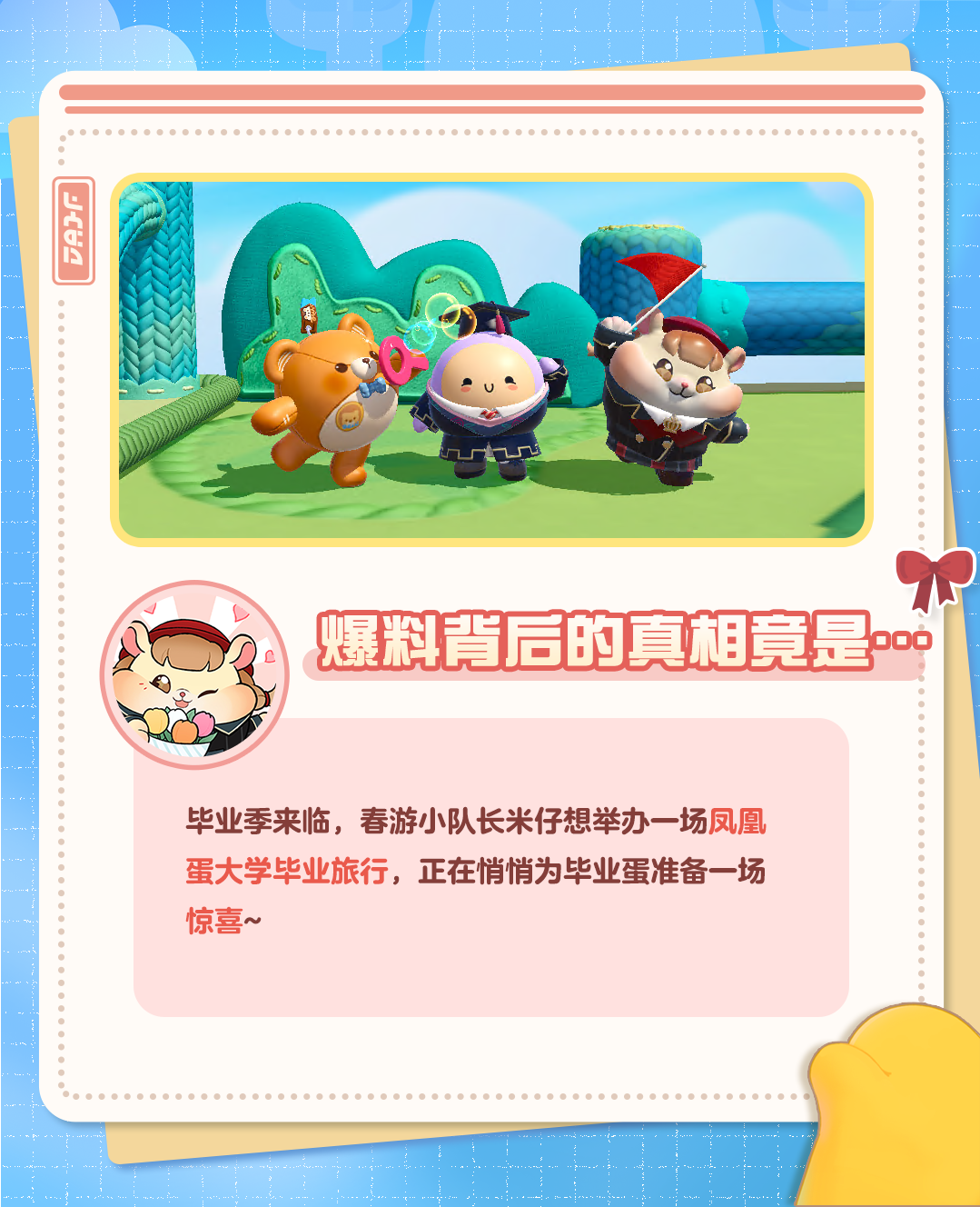 近日,收到一名毕业蛋的投稿 文中言:“吾日三省吾身,吾没有错......” 竟是被好友孤立这种蛋仔岛A级大事件! 太过分了! 皮蛋立马组织侦察小队开展调查 原来......