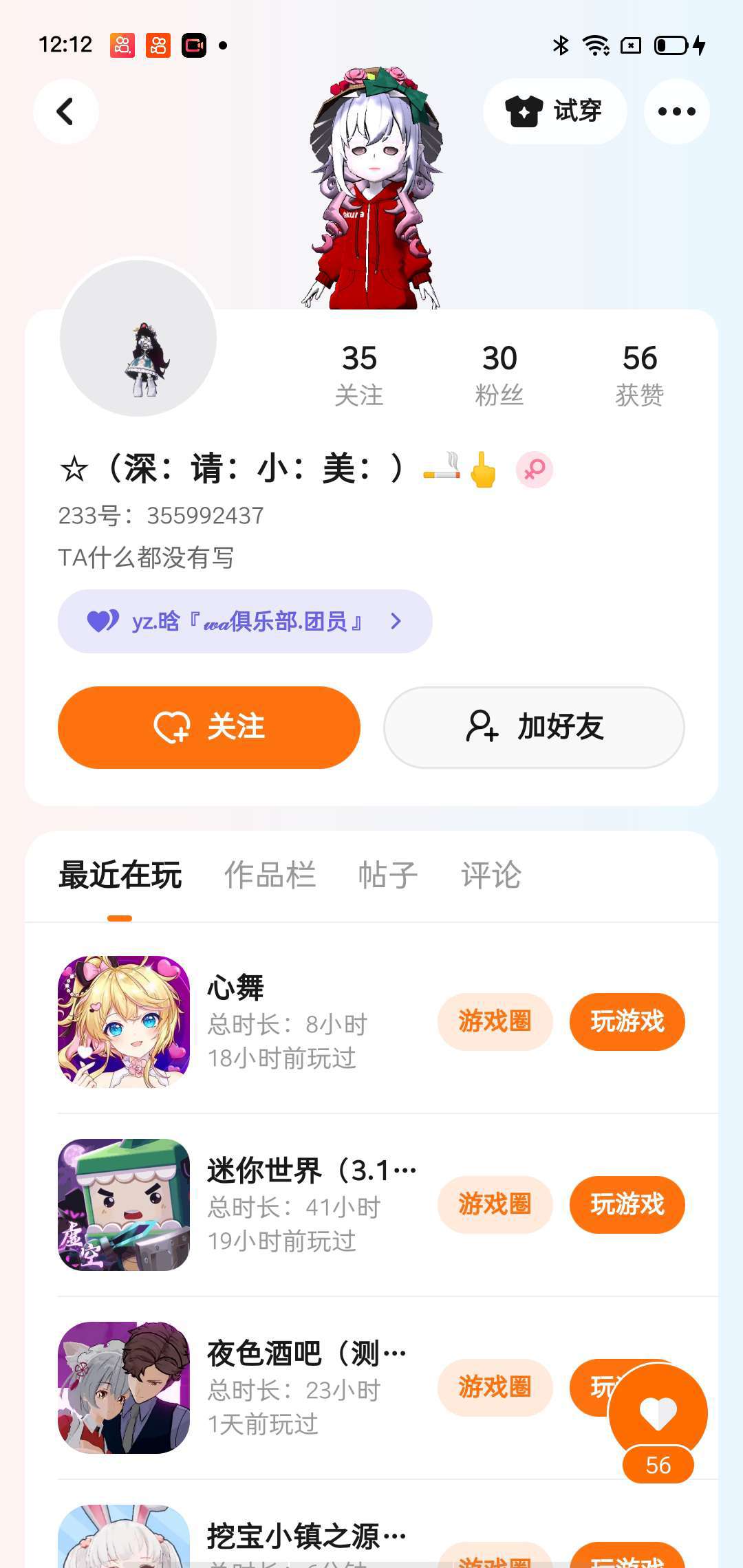 我虽然会上线。但基本不会发作品了,嘻嘻。因为不玩游戏,我真的不行(实在是我姐抢手机)