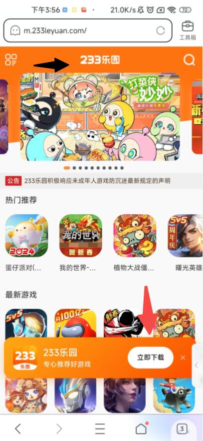 其实特别简单,第一步只要随便找个浏览器输入www.233leyuan.com就行了,这样出来的官方页面你直接点下面的下载就是正版233乐园的,反正我是这样下的