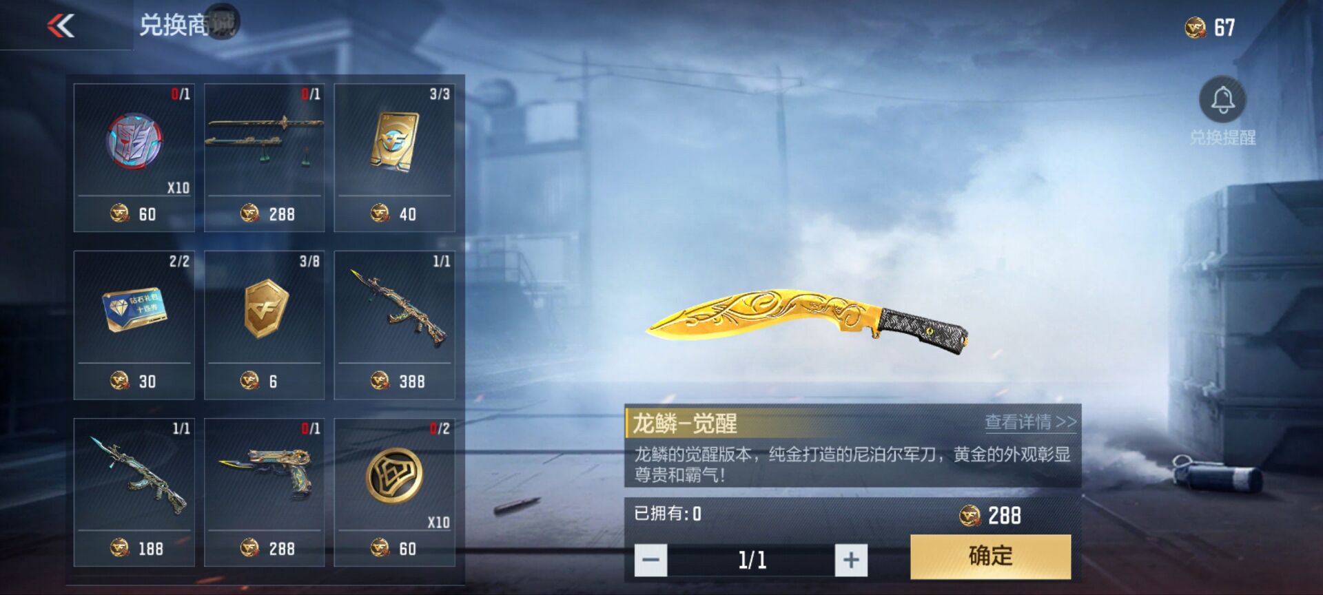 3月1日起,龙年CFM币兑换商城内上新全新兑换奖励——龙鳞-觉醒,一把由纯金打造的尼泊尔军刀,亮金色的刀身上绘有精致优雅的线条,同时其在觉醒后也拥有了急行军、快手、重击三项技能,目前在仅需288龙年CFM币即可兑换拿下,没有屠龙的玩家一定要兑换一把!