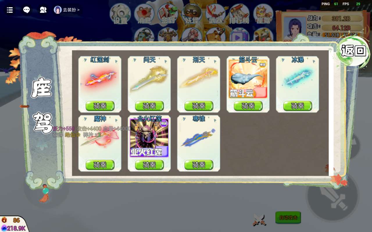 坐骑作者可以更新不同形态。升级 加战力