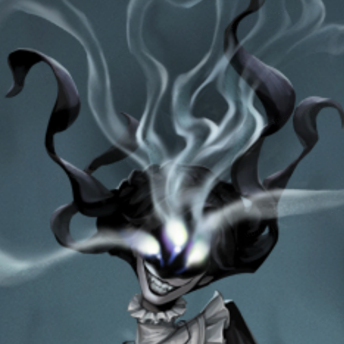凌乱的发丝飘散在半空中,几乎占据面部的漆黑空洞暗示“她”仅仅是某种中空的容器,盘踞其中之物操纵着躯体露出古怪而生硬的笑容。