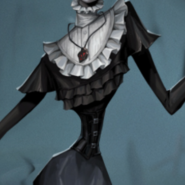 庄重的长裙失去了往昔的光泽,胸前古老、破碎的陶片上刻有怪异的字符,隐隐发出的红光将“她”的脸色衬得更加惨白。