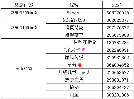 开奖啦~恭喜以下小伙伴们中奖!获得京东卡的宝宝请注意好友申请和私信向官方提供奖励收货地址哦~