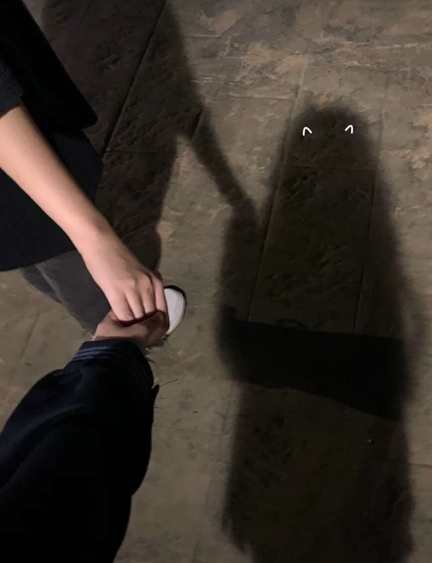 和男友牵手的照片。😁😁😁