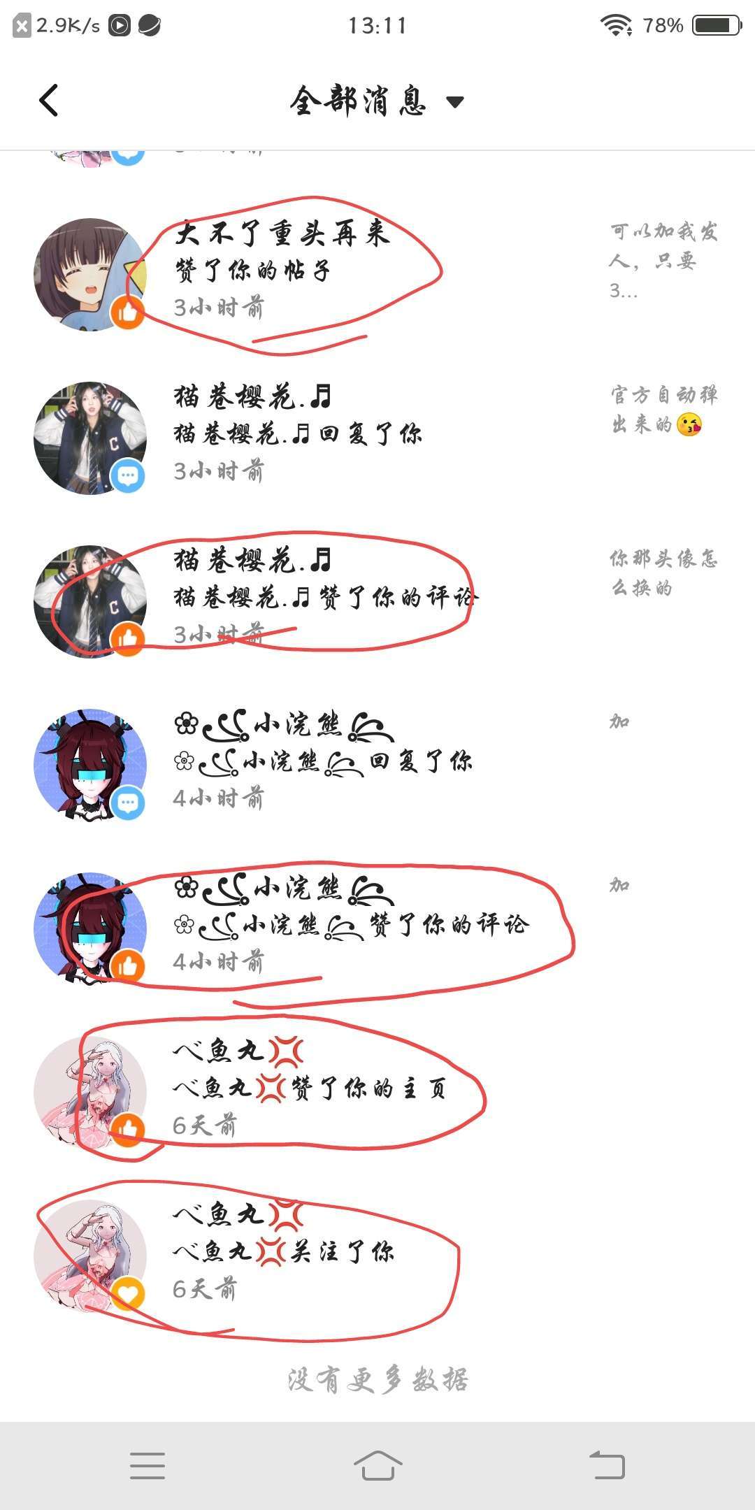 我圈出来的是关注我的和点赞了的