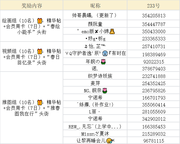 视频组(10名)🎁:精华贴+会员周卡(7日)+“春日回忆录”头街