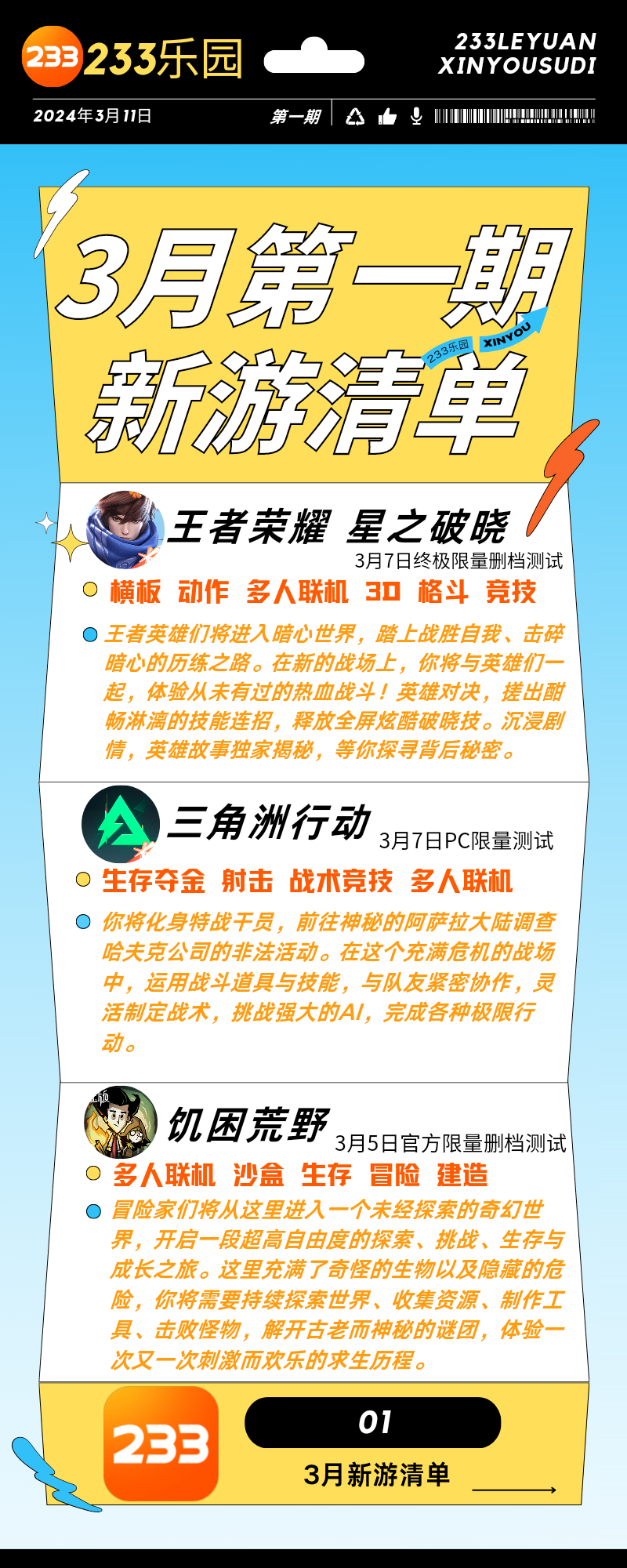 哈喽,游戏圈的宝宝们!我是版主沐晓霜,3月总计推荐6款重点新游,为了方便各位小伙伴阅读,沐晓霜拆成了2期内容,欢迎小伙伴们观看!