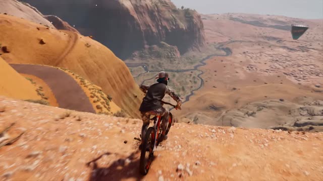 这是游戏《极限国度》的第一视角骑行内容,崎岖的山地土路还原出父母描述的小时候上学小路的艰险,玩家操控角色在这条充满弯道与坡道的山路上骑行,体验独特的山地骑行乐趣。
