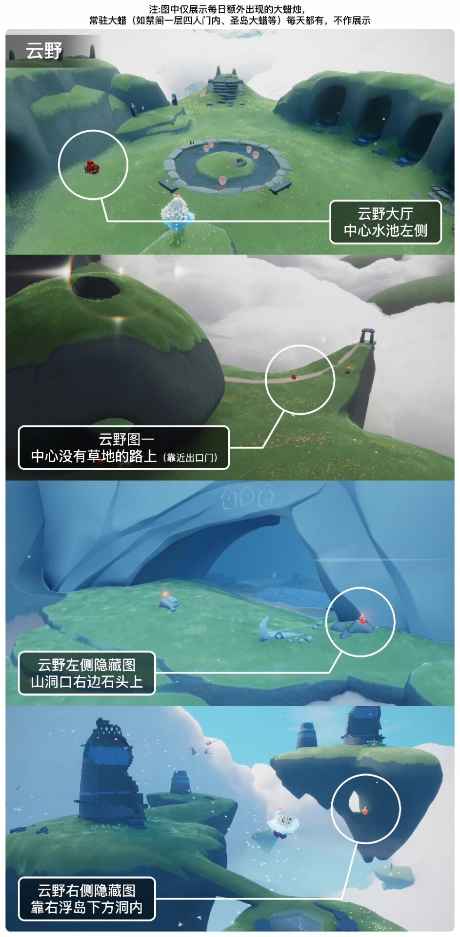 《光遇》游戏中每天的每日任务及大蜡烛的位置都不相同,玩家完成每日任务及收集大蜡烛都可以得到丰厚的兑换奖励,奖励可以用于兑换各种动作及道具,不过很多小伙伴不知道每日任务怎么做,又懒得自己去找大蜡烛的位置,我们汇总了每日任务的完成攻略以及蜡烛位置,一起来看看吧!