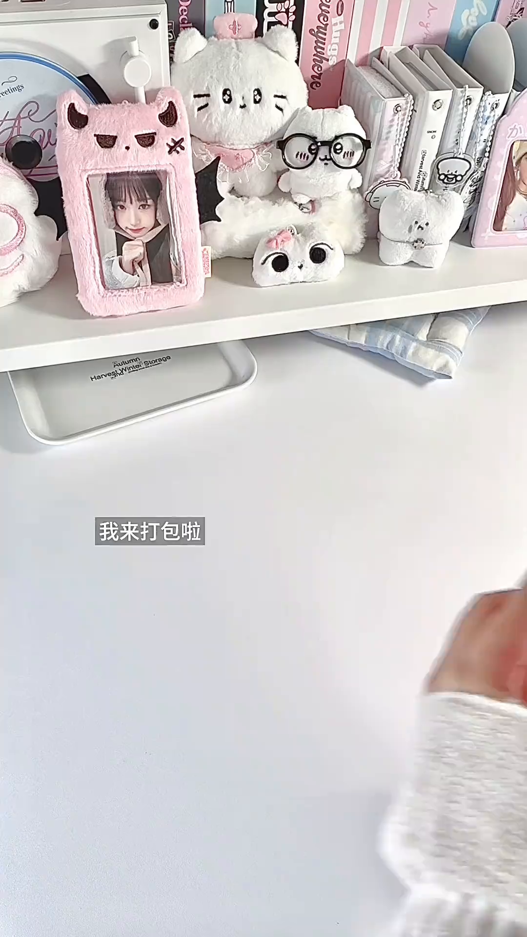 这是一则出卡打包日记,展示了偶像小圆的小卡,搭配可爱的饼干主题包装进行打包,还呈现了收纳的自印卡、涂鸦卡等各类小卡,分享小卡打包与收纳的过程。