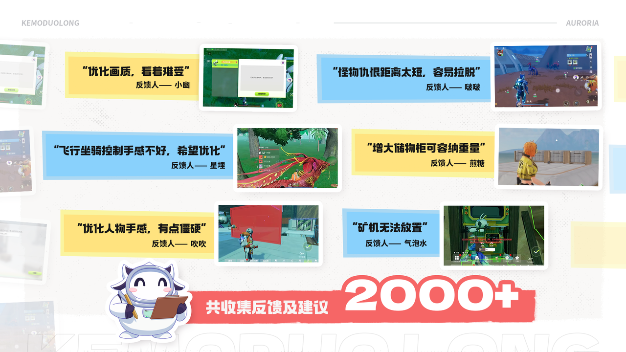 回到正题,本米继续给大家讲讲之前的「闪光终测」,除了游玩体验,我们也有收到大家的意见和建议、问题与BUG,放心吧,我们已经将它们记录在案,由项目组逐条评估与修复了~