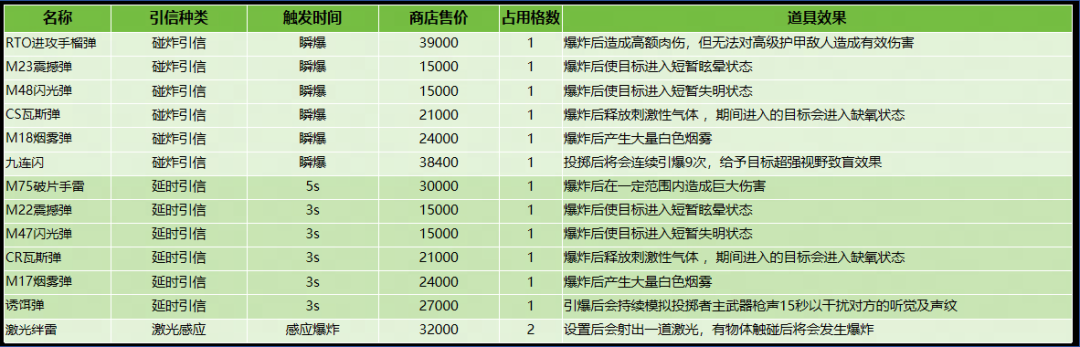 而延时式震撼弹则适合防守型用途,敌人冲过来后丢出可以打乱敌人进攻节奏,便于准备更好的反击!